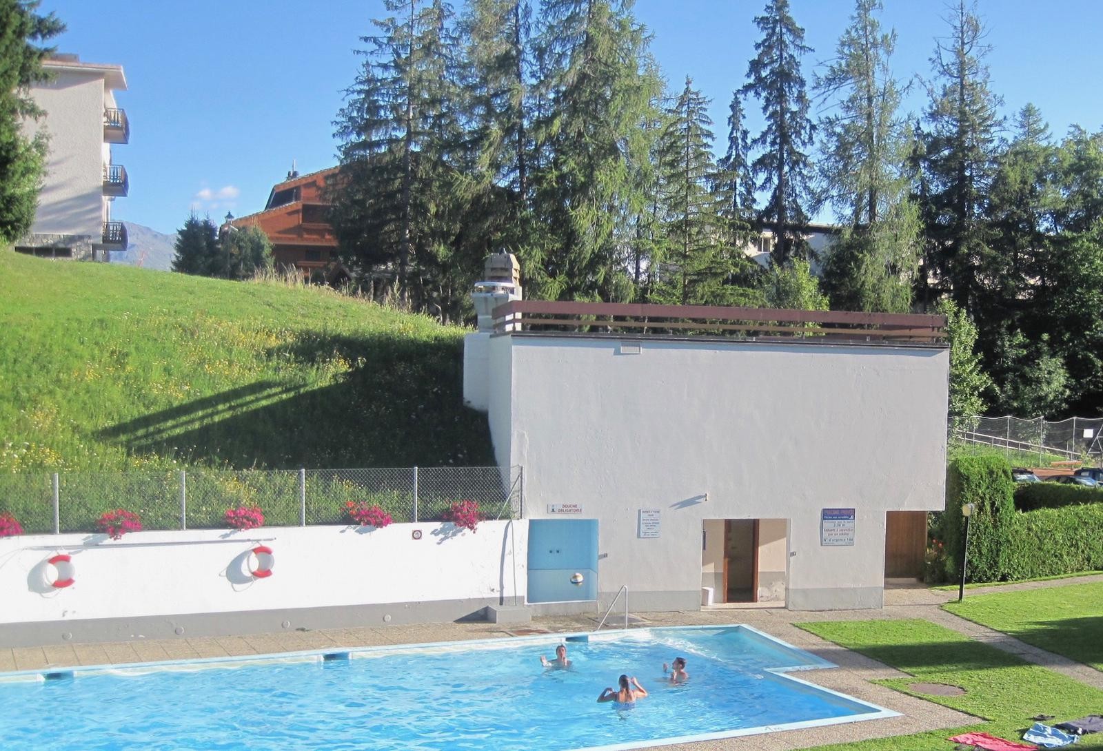 Bien qu'à deux pas seulement de la Migros et de l'arrêt de bus correspondant, ce studio jouit d'un emplacement tranquille et reposant. Il est orienté sud et vous permettra de profiter pleinement de son balcon. En été un accès libre à la piscine chauffée extérieure fait partie de l'offre.